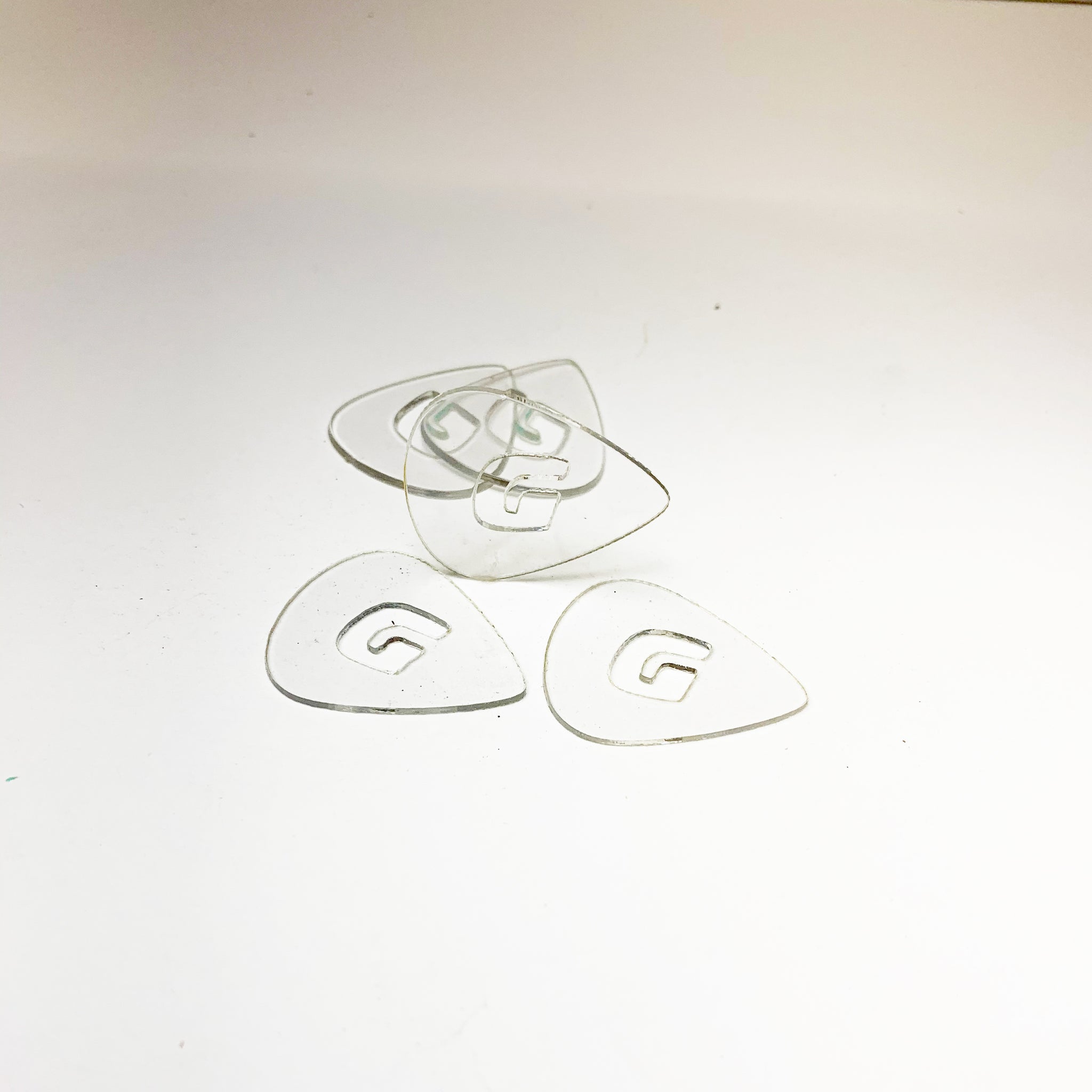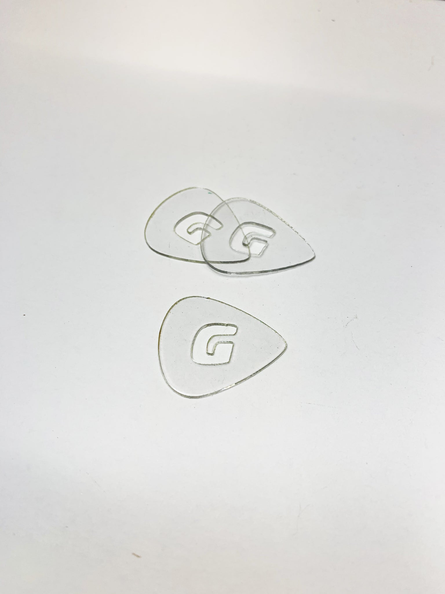 Enter our new 1mm thick custom GNN Shop Line Guitar Pick! These are laser cut from PETG, so they are TOUGH! Like seriously, they don't break (we've tried, a lot). The final touch is a complete cut through of our patented G logo, which lets you hold on when the temp goes up during your big solo and look good doing it!